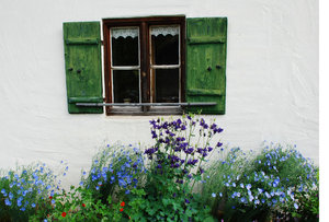 janela antiga, branco, countrystyle, flor, floral, flores, janela, janela de madeira, jardim, madeira, marrom, parede da casa, persianas, romântico, rual, rústico, velho, verde