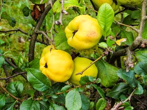 - quinze chaenomeles, amarelo, arbusto, arbustos, aromático, chaenomeles, comida, flor, flores, folha, folhas, fruta, frutas, jardim, jardinagem, marmelos, maçãs douradas, me frutas, natureza, planta, plantas, quinze, terra