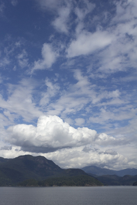ilhas e nuvens, Canadá, Vancouver, azul, baía, branco, colina, costa, céu, floresta, ilha, litoral, montanha, natural, natureza, nuvem, oceano, ondulação, ou, verde, água