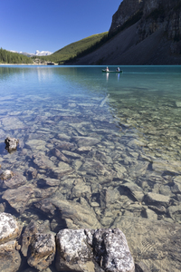 canoa no lago azul, Canadá, Canoísta, atividade, azul, barco, canoa, claro, diversão, esporte, floresta, flutuador, férias, lago, lazer, morena, natural, natureza, pedregulho, pá, rocha, água