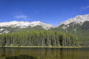 lago verde, Canadá, alcance, cana, costa, floresta, lago, montanha, montanhas rochosas, montanhas rochosas, natural, natureza, paisagem, reflexão, verde, água, árvore