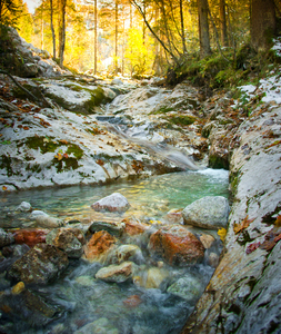 Mountain Creek, angra, asseado, cair, córrego, floresta, folheia, fresca, grama, idílico, montanhas, musgo, natural, natureza, outono, rio, rochas, seixos, água, árvores, árvores de bordo