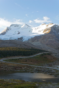 estrada para uma geleira, Canadá, curvatura, estrada, geleira, lago, luz solar, montanha, montanhas rochosas, neve, paisagem, sombra