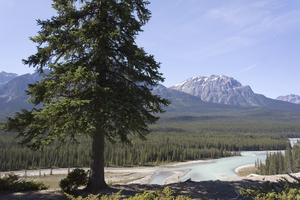 Grand View, Canadá, borda, cimeira, conífera, floresta, grande, madeira, montanhas, montanhas rochosas, natural, natureza, paisagem, penhasco, pico, rio, rochoso, sempre-viva, vista, árvore