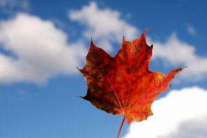 Folha do outono contra o céu azul