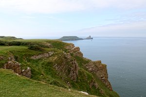 Falésias, A cabeça de minhoca, falésias, grama, grã bretanha, litoral, natural, natureza, ou, paisagem, país de Gales, penhasco, perigo, promontório, rocha, solta, íngreme