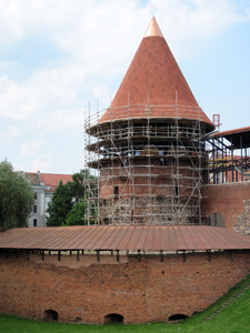 castelo reconstrução, Kaunas, castelo, construir, construção, fortaleza, grade, guarda, história, histórico, medieval, parede, paredes, reconstrução, telhado, tijolo, tijolos, torre