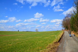Primavera está chegando, agricultura, arbustos, azul, branco, cenário, colina, céu, grama, horizonte, luz do sol, mola, nuvens, prado, árvores