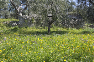 flores pomar, Apúlia, Gargano, Itália, Puglia, abundante, casa, casa, cor, cor, diversidade, fazenda, flora, flores, mola, natural, natureza, oliva, pedra, pomar, profusão, rural, selvagem, velho, árvore
