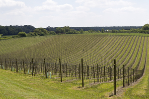 Inglês vinha, Inglaterra, Inglês, campo, colheita, fazenda, grã bretanha, hampshire, linhas, linhas, mola, plantação, postagens, pólos, videiras, vinhedo