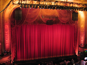 Antigo cinema, cinema, cortina, decorações, luzes, oculto, projectores, teatro, tela, vermelho