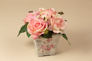 Rosas sintéticas, cor, decoração, diversão, estúdio, fechar-se, flor, fotografia, fundo, interior, lata, macro, natureza, ostra, passatempo, rosa, rosa, rosas