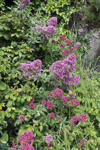 Flores de valeriana, Valerian officinalis, Valerianaceae, ervas, flores, medicinal, país de Gales, perenes, plantas, rosa, selvagem, valeriana, vermelho, verão