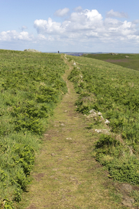 Campo trilha, Pembrokeshire, Skomer, andador, andar, caminho, campo, céu, destino, direção, exercício, galês, grã bretanha, natural, natureza, nuvens, passeio, país de Gales, pista, plantas, reino unido, samambaia, trilha, verde, viagem