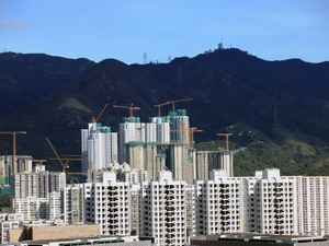 cidade construção, 2014, caro, cidade, construção, edifícios, hong kong, internacional, moderno, montanhas, shatin