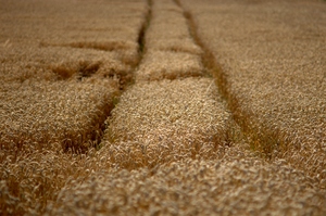 Campo de trigo com trilhas