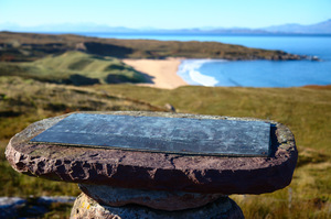 Highland Beach, Escócia, Skye, areia, azul, baía, beleza, bonito, claro, costa, costa, céu, duna, dunas, escocesa, highland, local, montanhas, ondas, paisagem, ponto de vista, praia, redpoint, urze, vista