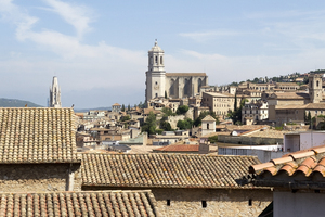 Cidade espanhola velha, Catalonia, Espanha, Girona, antigo, arquitetura, casas, casas, catalunha, catalão, cidade, edifícios, espanhol, histórico, igreja, telhados, telhas, torre, velho
