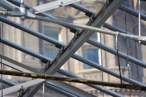 Estação Telhado de vidro, abaixo, chuva, cobertura, cobertura, envidraçado, estação, metal, proteção, telhado, vidro