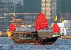 ásia antigo navio, 2014, cidade, hong kong, litoral, navio, turismo, velas, vermelho