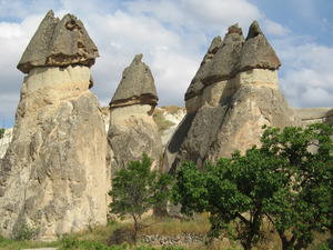Chaminés feericamente, Capadócia, chaminés, duro, fairy, formas, macio, peru, rochas, rude, vulcânico