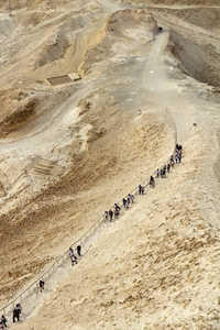 Grupo de excursão, Israel, andar, antigo, artificial, bare.bleak, cerco, declive, deserto, estéril, exercício, grupo de excursão, histórico, linha, massada, paisagem, rocha, rochoso, romano, seca, severo, trilha, turismo, turistas, velho, viagem, à noite
