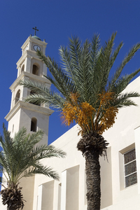 Jaffa, Israel, Israel, Jaffa, arquitetura, construção, cristão, igreja, joppa, palma, religioso, religião, relógio, torre, árvore