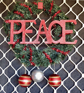 Cumprimento do Natal porta, Natal, aparência, apresentação, argênteo, aspectos, bells, brilhante, bugigangas, circular, colori, colori, colorido, colorido, conformado, contrastando, contrastar, cor, cor, decorativo, decorações, display, entrada, exibido, forma, formas, frente por, fundo, grinalda, luz, padrões, palavra, papel de parede, paz, perspectivas, por, prata, redondo, simbólico, superfície, superfícies, símbolo, textura, texturas, texturizado, verde, vermelho, vibrante, ângulos