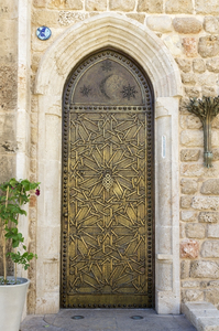 Antigo porta, Israel, antigo, arco, arquitetura, decorativo, elementos, histórico, metal, ornamentado, padrão, pedra, por, segurança, velho, árabe