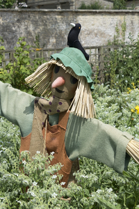 Espantalho, Inglaterra, Inglês, Wiltshire, cara, crescer, espantalho, grã bretanha, impedimento, jardim, legumes, plantas, produzir, proteger, tem, verão