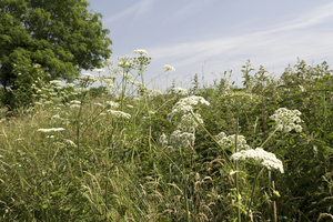 Flowerheads umbellifer, Inglaterra, Inglês, Wiltshire, banco, beira, beira da estrada, branco, cabeças, campo, flores, grã bretanha, natural, natureza, rural, umbelliferae, umbellifers, verde, verão