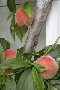 Pêssegos, Inglaterra, Inglês, Prunus persica, casa verde, colheita, colheita, fruta, grã bretanha, horticultura, jardinagem, maduro, pêssego, pêssegos, ramo, treinado, árvore