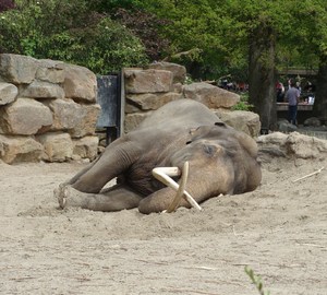 Descansar Elefante 1, adormecido, elefante, emmen, emmen zoo, jardim zoológico, repouso