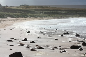 Ondas na praia, Escócia, agitado, areia, chicote, colisão, dunas, espuma, falhando, highland, onda, ondas, praia, rebentação, rochas, surto, tempestade, vento, ventoso