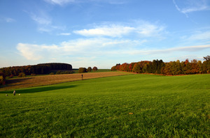 caminhar no outono, Alemanha, Lindlar, andar, arbustos, campo, colinas, céu azul, floresta, grama, luz do sol, nuvens, outono, paisagem, prado, árvores