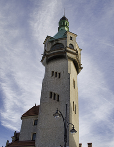 antigo edifício-Gdansk, Windows, construção, céu, lâmpadas de rua, torre