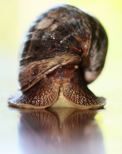 O caracol - close-up 3, caracol, concha, deslize, espelho, fechar-se, lento, lodo, macro, réptil, slide, superfície