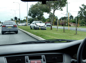 lembrete acidente na estrada, -estradas divididas, Austrália, Carro, acidental, acidente, arrabaldes, beira, caiu-vehcile, carros, colisão, direção, dividido, do fluxo do tráfego, esquerda-condução, estacionário, estrada, estrada principal, grande, interseção, junção, largura de estrada, motor-carros, movimento, nuvens, postes de iluminação, quebra, regras rodoviárias, rotunda, rua, sinais, sinal, street-junção, street-scene, suburbano, tráfego, tráfego-lanes, veículos, veículos motorizados