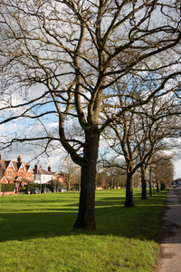 vila verde no inverno, Inglaterra, Inglês, aldeia, caminho, casas, casas, comunidade, dia, ensolarado, espaço, grama, grã bretanha, inverno, janeiro, luz do sol, passeio, rural, surrey, verde, árvores
