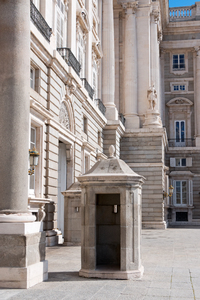 guarita, Espanha, Madri, arquitetura, elementos, espanhol, guarita, palácio, palácio real, pedra, pilares, pátio