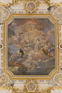 teto pródiga, Espanha, Madri, antigo, arquitetura, cena, decorativo, embelezado, espanhol, histórico, ornamentado, ornamental, ouro, palácio, palácio real, pintado, pintura, pródigo, real, teto, velho