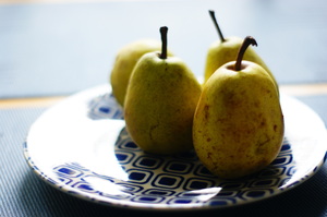 peras, amarelo, azul, chapa, comida, doce, fruta, frutas
