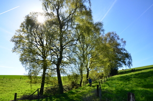 manhã de primavera, cena rual, cenário, céu azul, manhã, mola, prado, sol, árvore