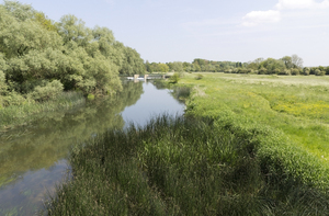 rio calmo, Bedfordshire, Inglaterra, Inglês, açude, bancos, campo, fluir, grã bretanha, já, natureza, pacífico, prado, reflexão, rio, rural, tranquilo, tranquilo, verde, água, árvores