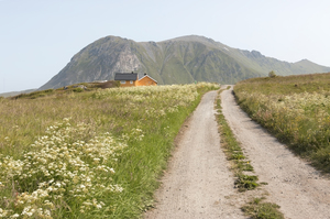 casas rurais, Noruega, casas, casas, edifícios, estrada, faixa, flores, laranja, montanha, norueguês, paisagem, pista, rural, selvagem