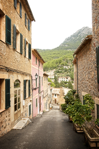 vila sobre uma colina, Espanha, Maiorca, Windows, aldeia, arquitetura, baleares, casas, casas, cena, colina, espanhol, estrada, montanha, pedra, persianas, rua, vertente, vista