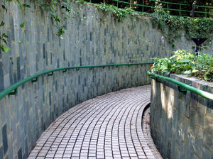 entrance1 passagem subterrânea, acesso, alvenaria, angulado, arquitetura, arquitetônico, através dos, brilhante, caminho, caminho, cantaria, corrimãos, curvo, declive, decorativo, encurvamento, folhagem, inclinado, inclinado, inclinação, luz, luz do sol, luz solar, parede, passagem, passagem, passagem inferior, pavimentação, pavimentou, pedestre, pedestres, protetor, prático, segurança, seguro, sombra, sombras, suave, vegetação, verdura, ângulo, ângulos