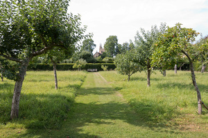 Pomar de macieiras, Inglaterra, Inglês, caminho, fruta, grama, grã bretanha, igreja, imóveis, kent, malus, maçã, paddock, passeio, pasto, pomar, prado, árvores