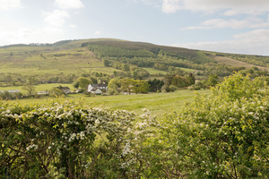 paisagem de primavera, Crataegus, Cumbria, Inglaterra, Inglês, ambiente, casa, casa, cerca viva, colina, espinheiro-alvar, grã bretanha, mola, natural, natureza, paisagem, prado, rural, verde, vista